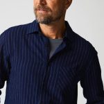 With indigo dyeing, no two are alike, and that’s the beauty of it. The way you live in these pieces makes them unique to you. They get softer and fade beautifully with time. Our John T shirt is woven from indigo-dyed cotton yarns into a beautiful stripe. It’s cut in a standard fit, which provides ease of movement and ultimate comfort. Constructed with a spread collar, a split spade chest pocket, and finished with genuine dark horn buttons and a subtle detail: our heirloom ribbon applied to the bottom of our elevated French placket. It wears relaxed, feels perfectly worn-in, and will only get better.