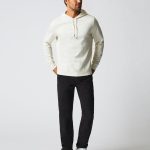 An elevated take on the classic jersey cotton pullover hoodie. This features cover stitching at the body, subtle patches at the elbow, twill tape reinforcement at the neck, and antique brass pull cord tips finished with our signature heirloom ribbon stripe.